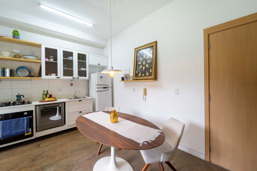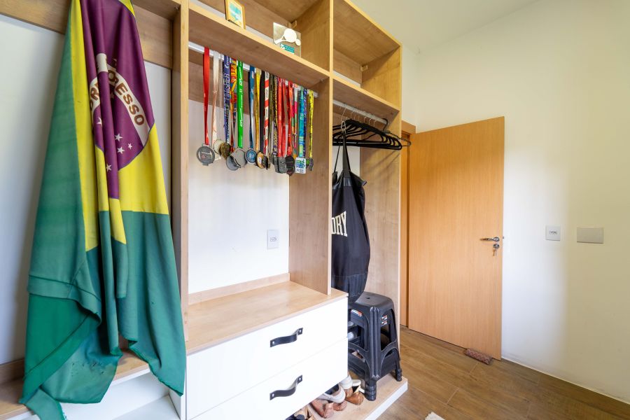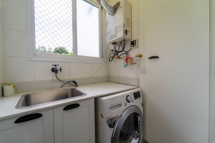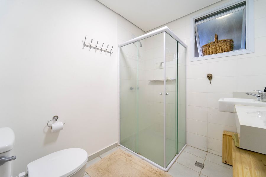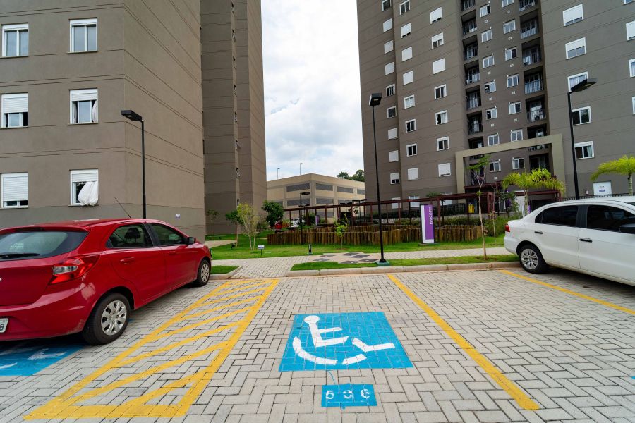 Um dos grandes diferenciais deste apartamento é o fato de ser térreo, ideal para quem prefere evitar escadas ou precisa de mais facilidade de acesso. O imóvel conta ainda com banheiro preparado para acessibilidade e vaga de garagem especial, mais larga que o padrão, facilitando o embarque e desembarque.
