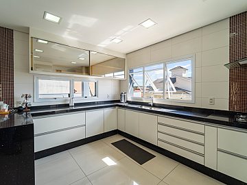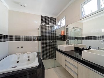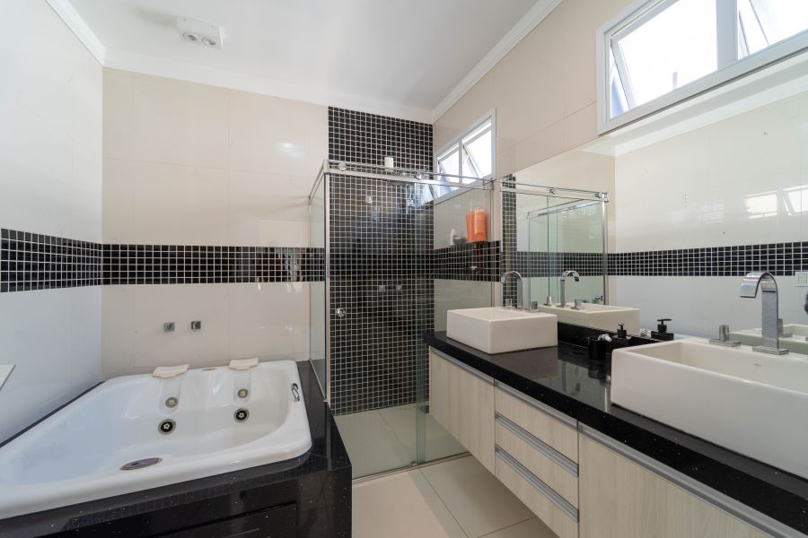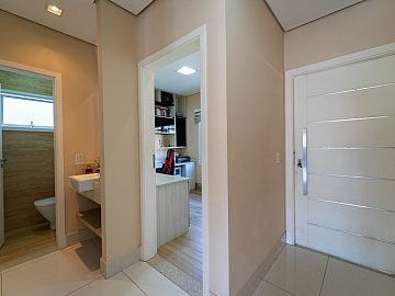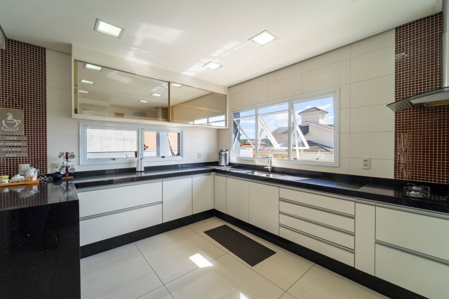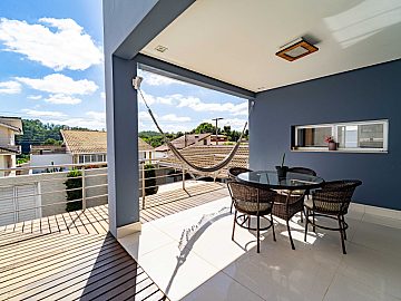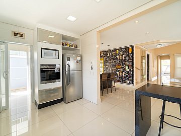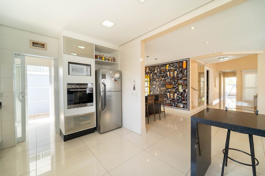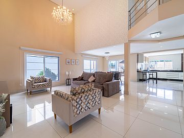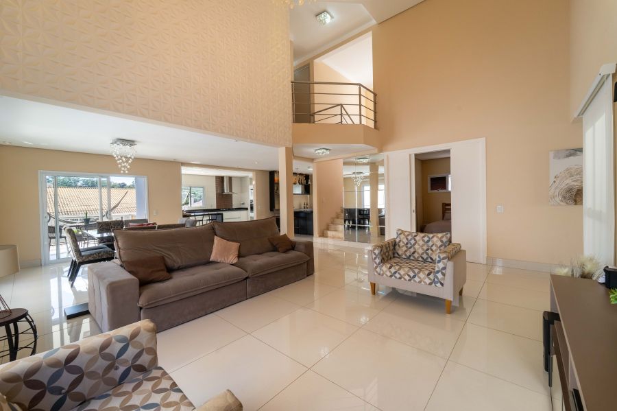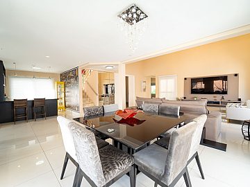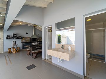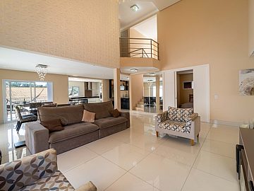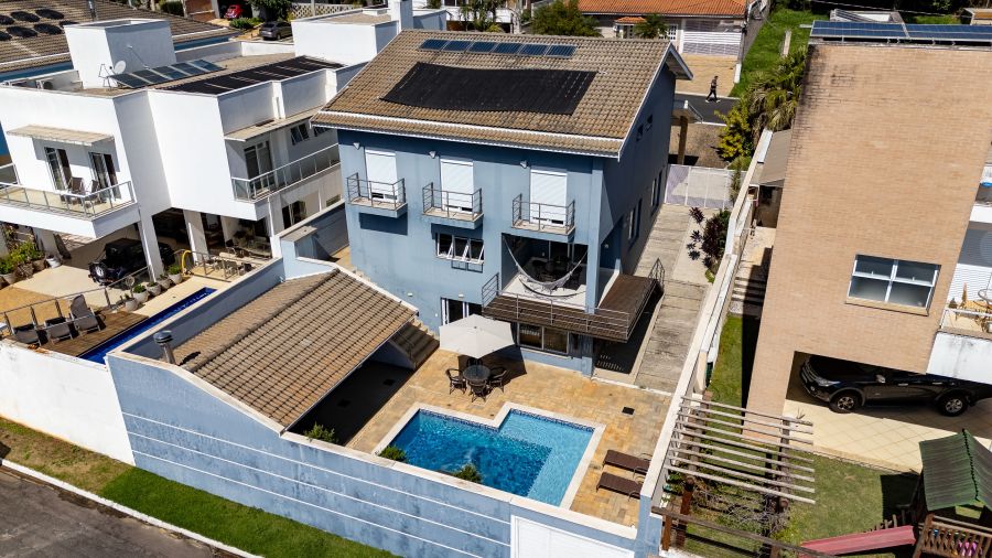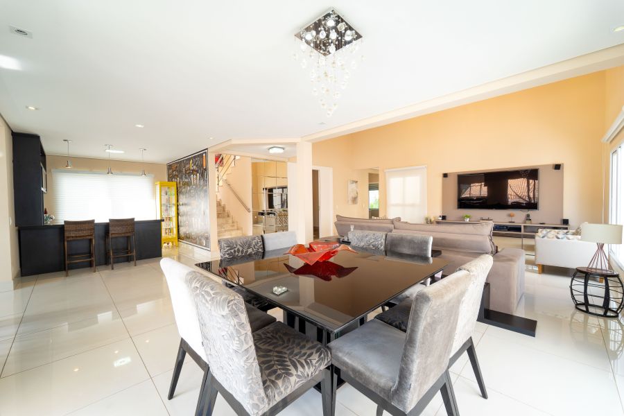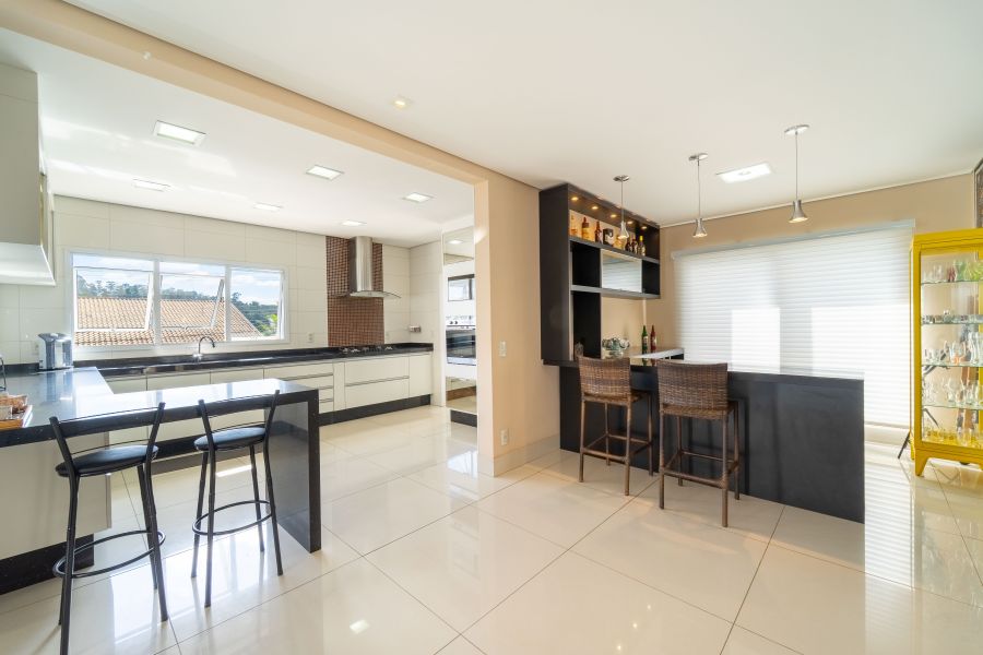 A casa é abastecida com energia solar e a gás, conta com aquecimento nos chuveiros e torneiras, promovendo sustentabilidade e economia. A sala de estar com pé direito duplo proporciona amplitude e elegância ao ambiente, integrando-se harmoniosamente à cozinha e à sala de jantar. Um espaço adicional no ambiente social, para degustar vinhos e drinks é o convite ideal para momentos de descontração com amigos e familiares.