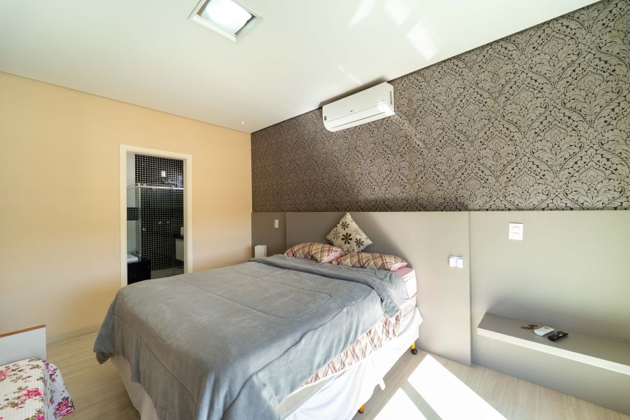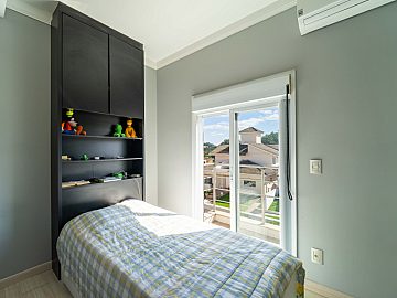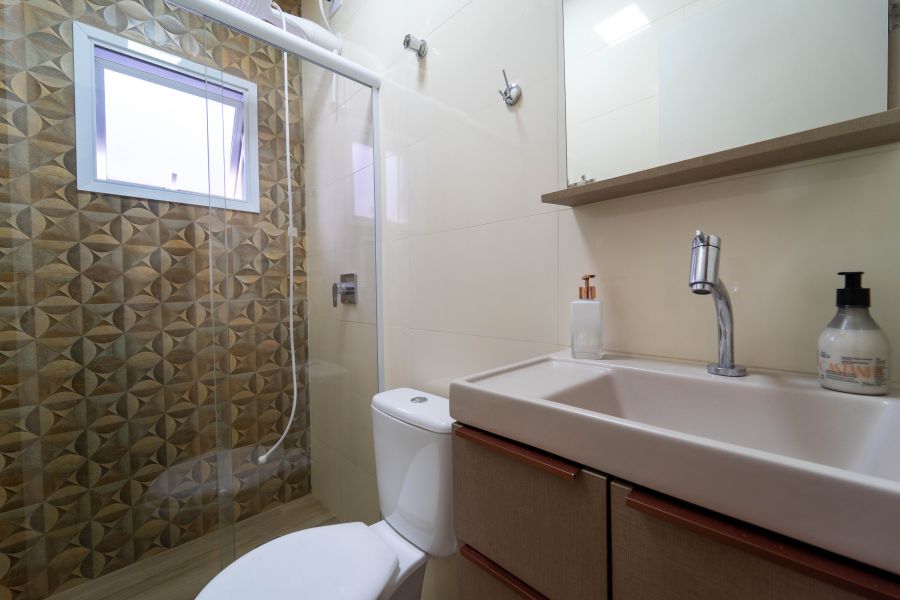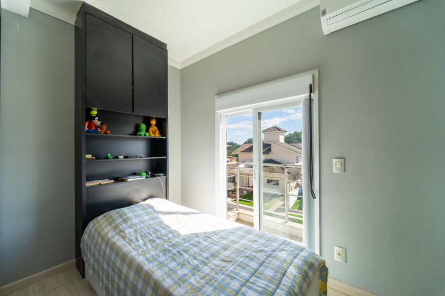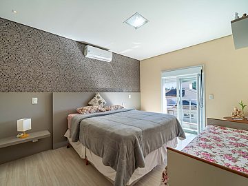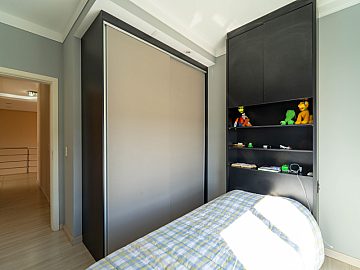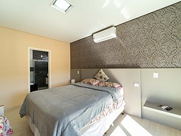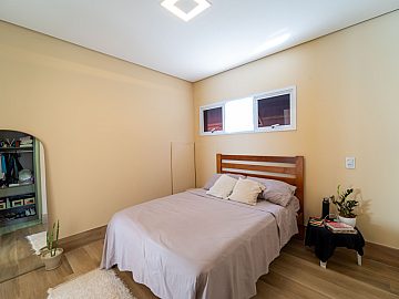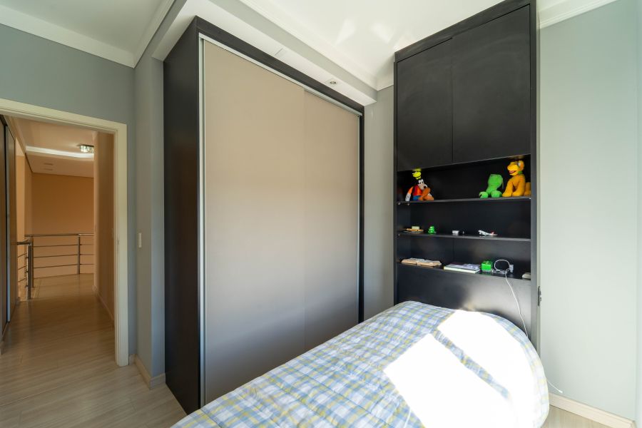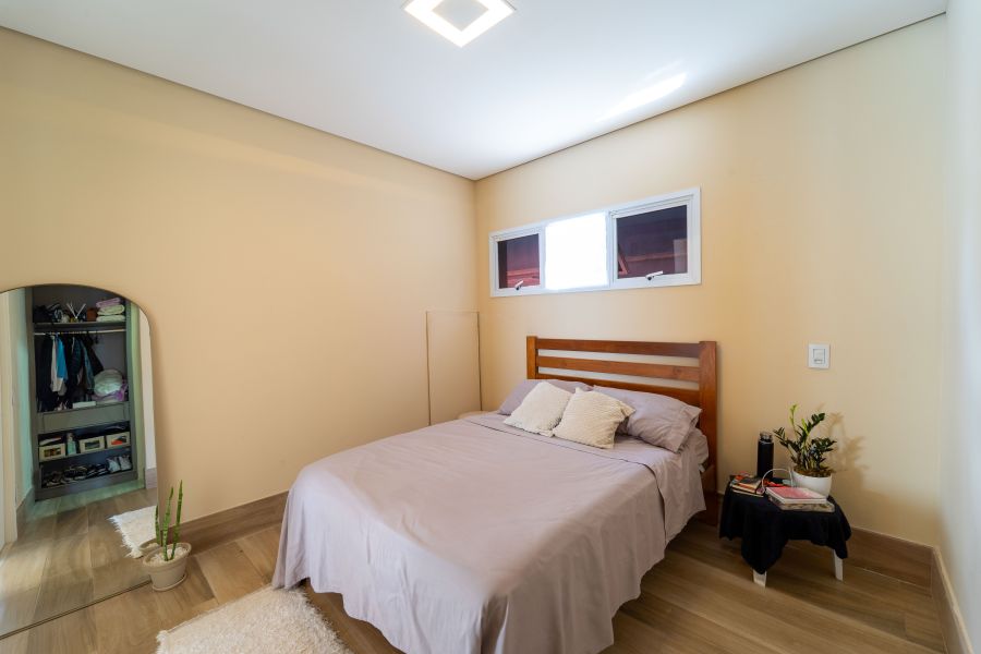 No pavimento superior, encontram-se a suíte master com closet e dois dormitórios bem distribuídos, oferecendo conforto e privacidade para toda a família.