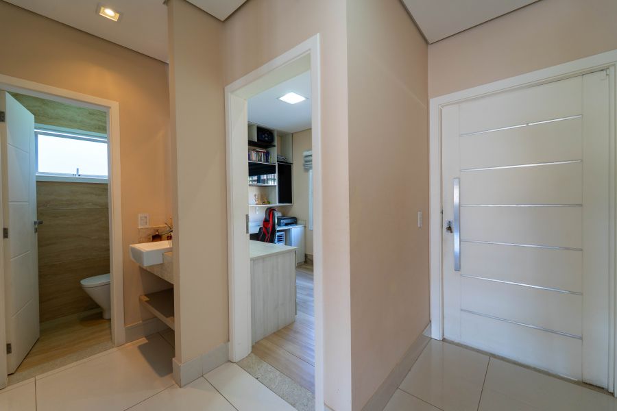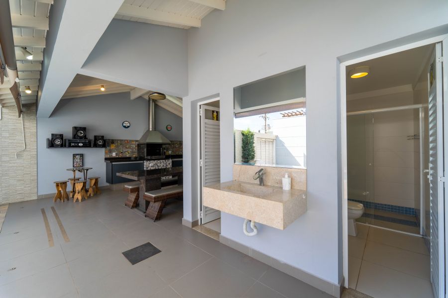 O grande destaque desta casa está no pavimento inferior, onde a área de lazer encanta: uma área gourmet completa, piscina privativa e um salão de jogos na lateral fazem deste espaço o verdadeiro coração da casa. Ideal para reunir quem você ama e viver momentos inesquecíveis.