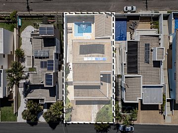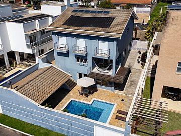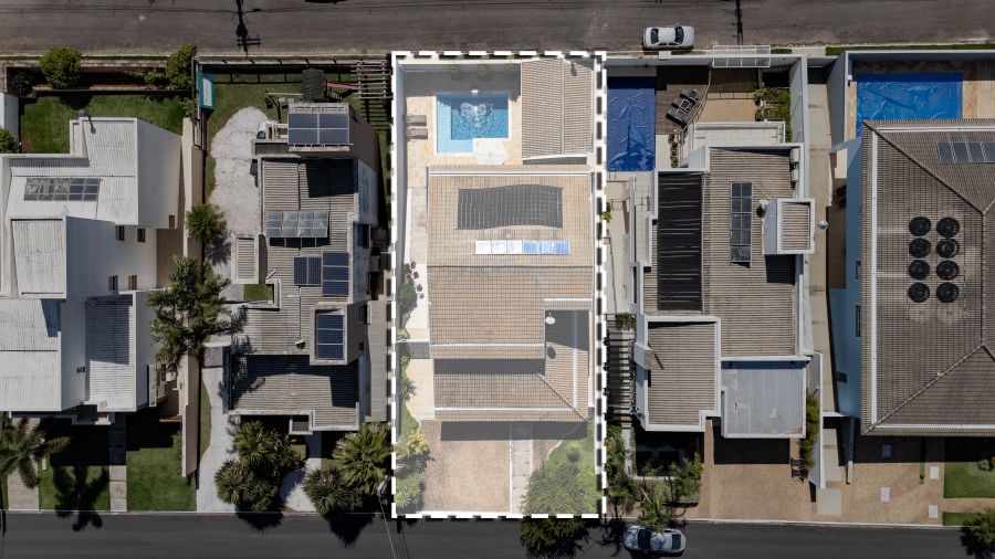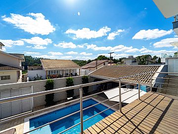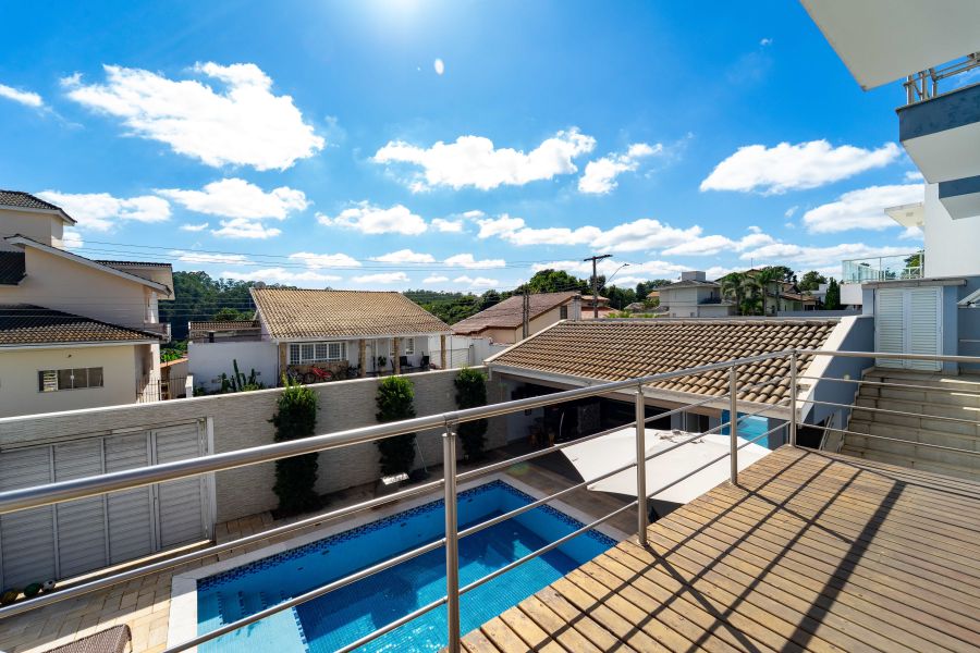A residência conta ainda com duas entradas independentes - uma principal e outra de acesso direto à área de lazer - além de 6 vagas para carros.