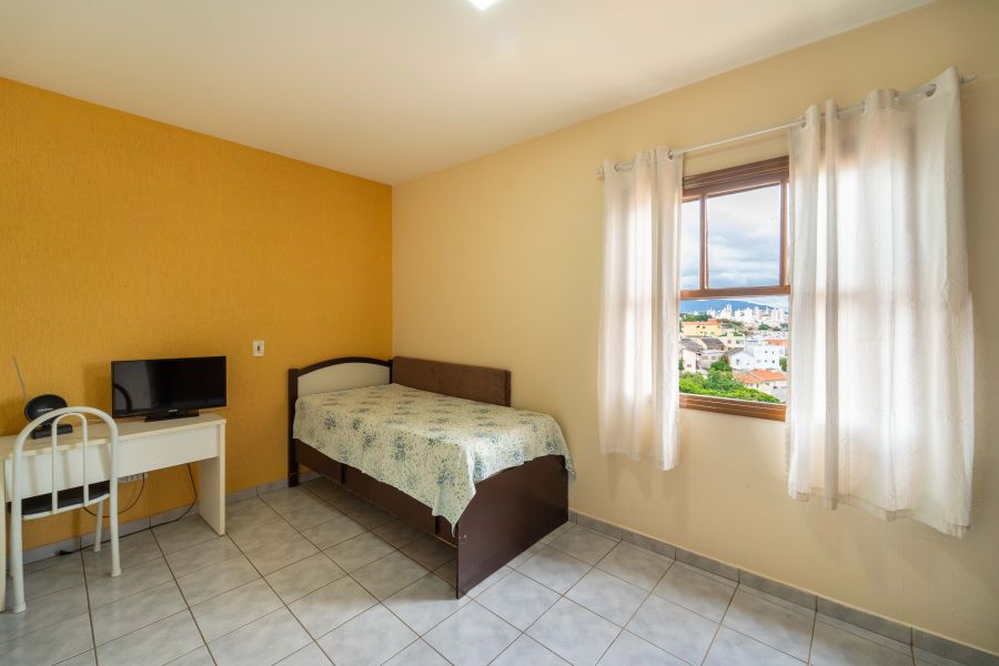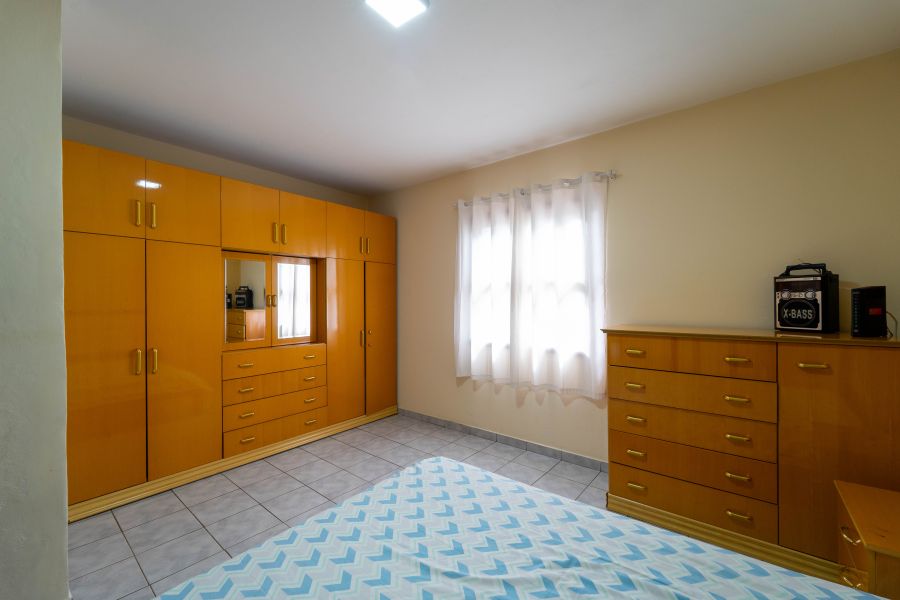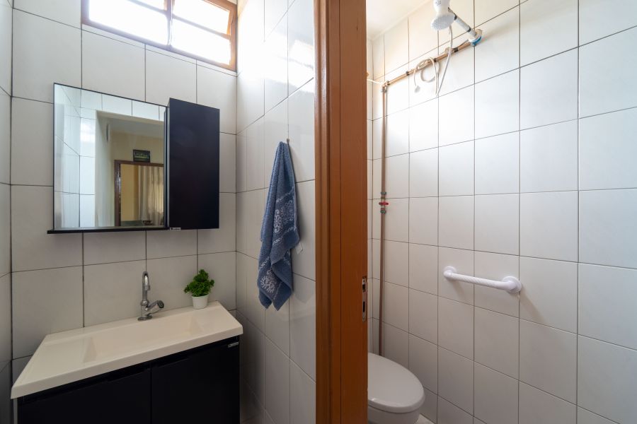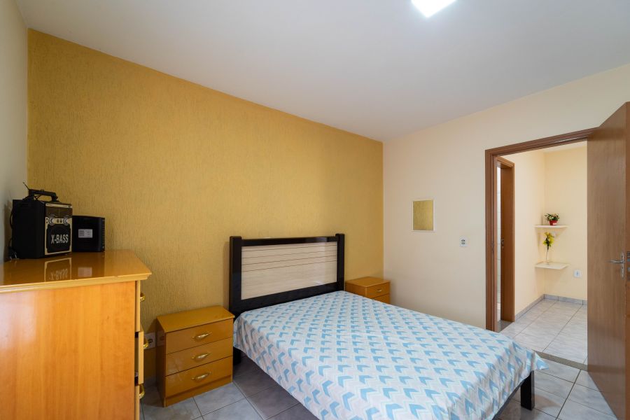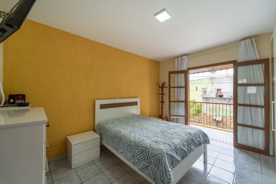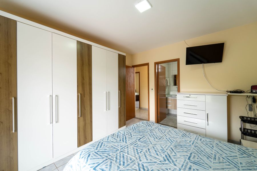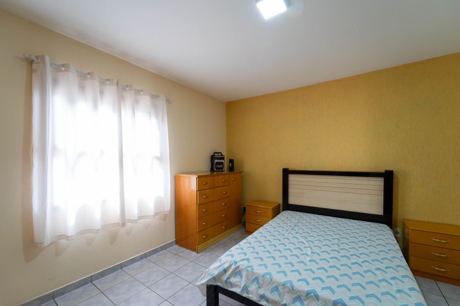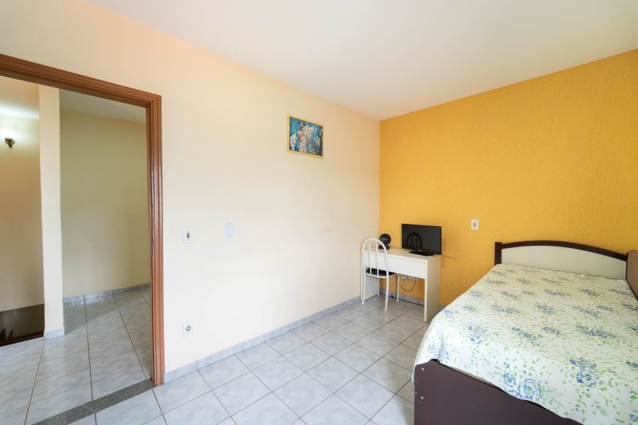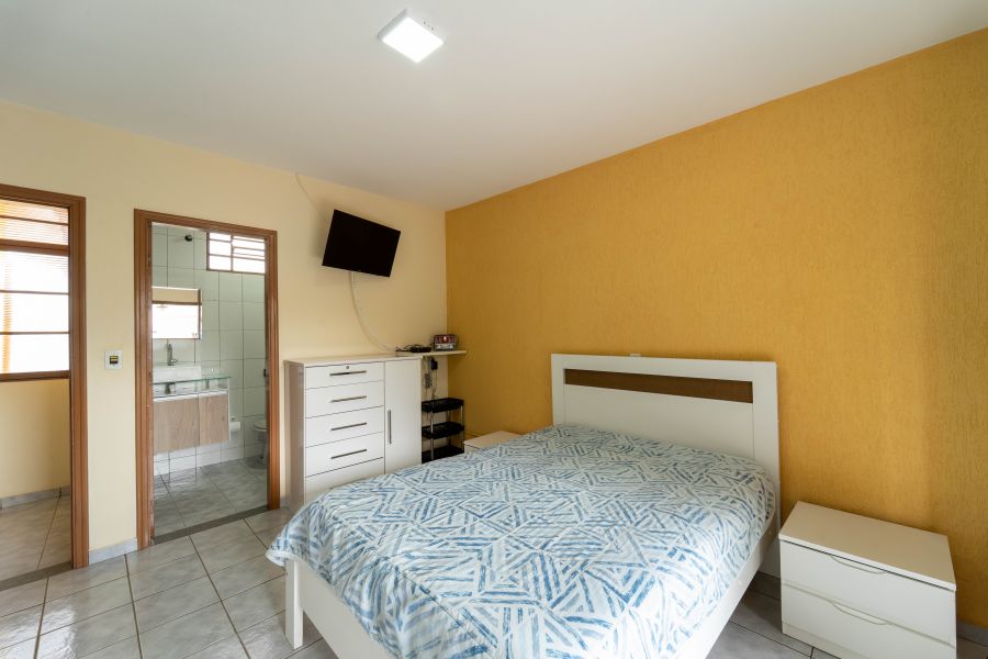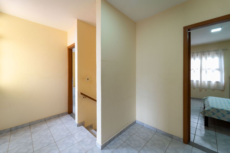 No andar superior, estão os três dormitórios, sendo uma suíte que proporciona mais privacidade e tranquilidade, além de um banheiro que atende os demais quartos , espaços pensados para o descanso e a intimidade da família.
